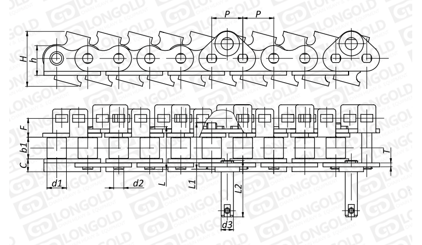 附件是為了將夾具安裝在鏈條上的零部件。可根據(jù)客戶要求設(shè)定安裝間隔。