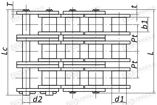 載荷較大時可選用雙排鏈或者多排鏈,但排數(shù)一般不超過三排或四排,以免由于制造和安裝誤差的影響使各排鏈?zhǔn)茌d不均。