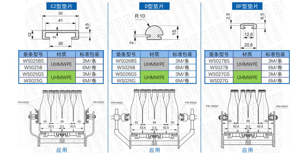 在選擇鏈板墊條時,需要考慮安裝尺寸、形狀、材質(zhì)性質(zhì)等因素,如有需要,請咨詢隆德技術(shù)人員。