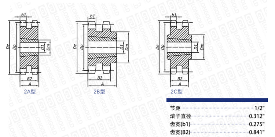 ■雙排B型鏈輪尺寸表