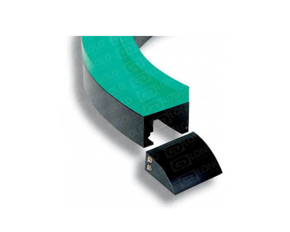 磁性轉(zhuǎn)彎軌道結(jié)合了金屬和塑料鏈板兩個(gè)系統(tǒng),即金屬頂板鏈和塑料頂板鏈能安裝在相同的磁性轉(zhuǎn)彎軌道上。將兩塊磁鐵嵌入軌道底部,并采用一塊金屬板進(jìn)行連接,可以吸住鏈條使其穩(wěn)定運(yùn)行,鏈板通過(guò)軌道時(shí)無(wú)蠕行現(xiàn)象以及鏈板與軌道完美貼合無(wú)側(cè)翻的效果