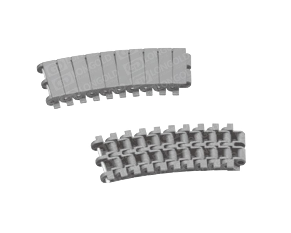 頂板鏈的鏈板通常比較寬大且厚實(shí),其形狀多為平板狀。LSP60鏈條的側(cè)彎鏈形式,用于曲線輸送機(jī)。 銷軸有不銹鋼銷型和塑料銷型