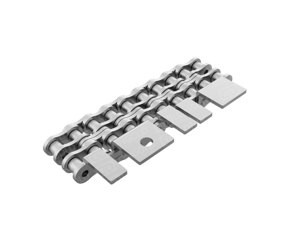 單排果凍機(jī)鏈,生產(chǎn)果凍裝置的驅(qū)動(dòng)鏈條,參與果凍生產(chǎn)冷卻、凝固、脫模等多個(gè)步驟,鏈條整體采用SUS304不銹鋼材質(zhì),在果凍生產(chǎn)環(huán)境中,能夠有效抵御水汽、糖分以及各種清潔消毒劑的侵蝕。