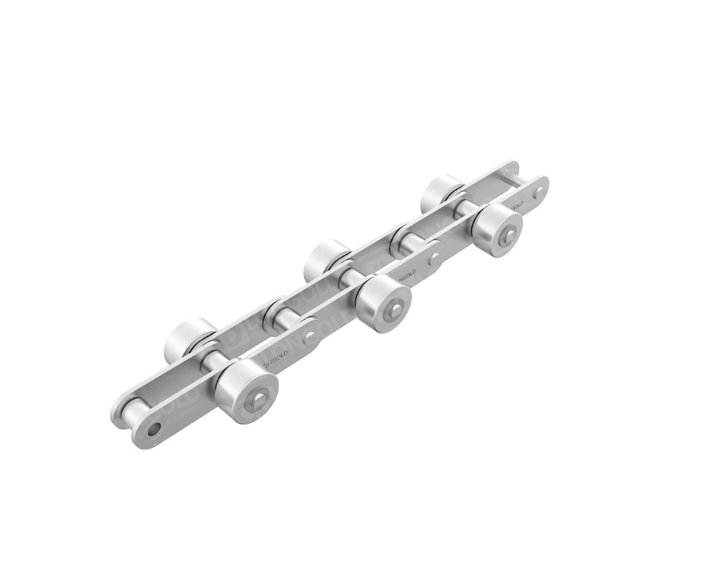 不銹鋼帶側(cè)滾輪輸送鏈?zhǔn)且环N特殊設(shè)計(jì)的鏈條,它在傳統(tǒng)的輸送鏈基礎(chǔ)上增加了側(cè)置滾輪,這些滾輪可以是塑料或鋼制的,用于提高輸送效率和減少摩擦。