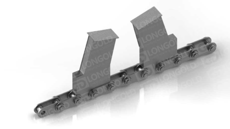 依靠鏈板底部底座附帶的折彎板上的孔將鏈條固定,能防止鏈條在運輸過程中出現(xiàn)抖動蛇形等情況,同時鏈板為直板型,方便鋼材的放置和運輸。