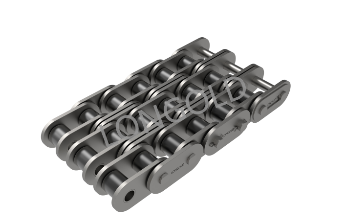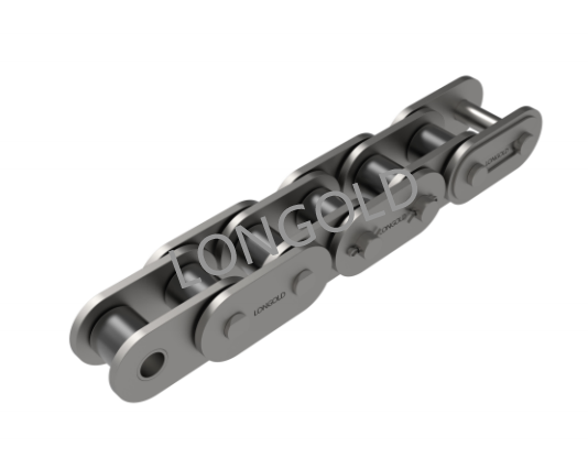 將短節(jié)距A系列傳動(dòng)滾?鏈條的鏈板變更為直板形,直接將?件承載于鏈板之上進(jìn)?輸送的鏈條。鏈條的列數(shù)是3列。也根據(jù)客戶需求定制非標(biāo)附件加裝在鏈板或者銷軸上。
