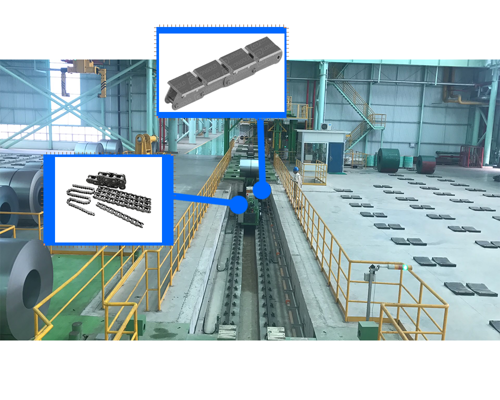 鋼鐵是現(xiàn)代工業(yè)的基礎(chǔ)材料,廣泛應(yīng)用于建筑、機(jī)械、汽車、航空航天、能源等領(lǐng)域。鋼鐵冶金行業(yè)的發(fā)展水平直接影響著一個(gè)國家的工業(yè)化進(jìn)程和經(jīng)濟(jì)實(shí)力。鋼鐵冶金行業(yè)是一個(gè)龐大而復(fù)雜的產(chǎn)業(yè),它涉及到從鐵礦石開采到鋼鐵產(chǎn)品制造的多個(gè)環(huán)節(jié)。隆德生產(chǎn)的鋼鐵冶金用的鏈條的鏈板設(shè)計(jì)得厚實(shí)且堅(jiān)固,可以承受沉重的鋼鐵物料,同時(shí)鏈板之間采用高強(qiáng)度銷軸鏈接,鏈條整體能夠承受高溫線材的熱量。