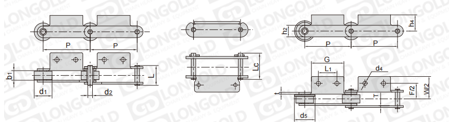 鏈條節(jié)距為非標(biāo)規(guī)格,需要安裝特定的附件,以用于物料的輸送。