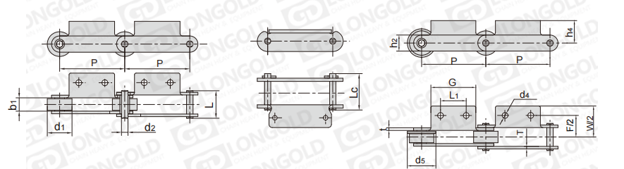 鏈條節(jié)距為非標規(guī)格,需要安裝特定的附件,以用于物料的輸送。