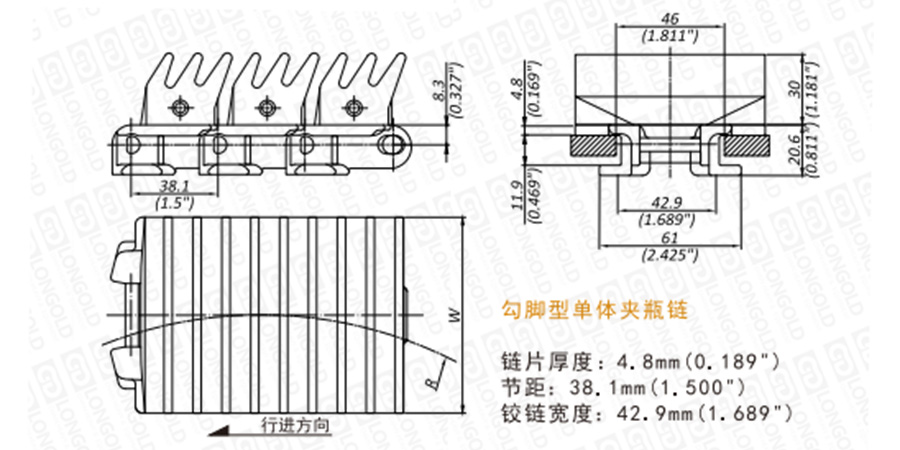 上圖為LDGW878T系列 一體式夾瓶鏈的結(jié)構(gòu)圖,圖紙已標(biāo)明本體尺寸。