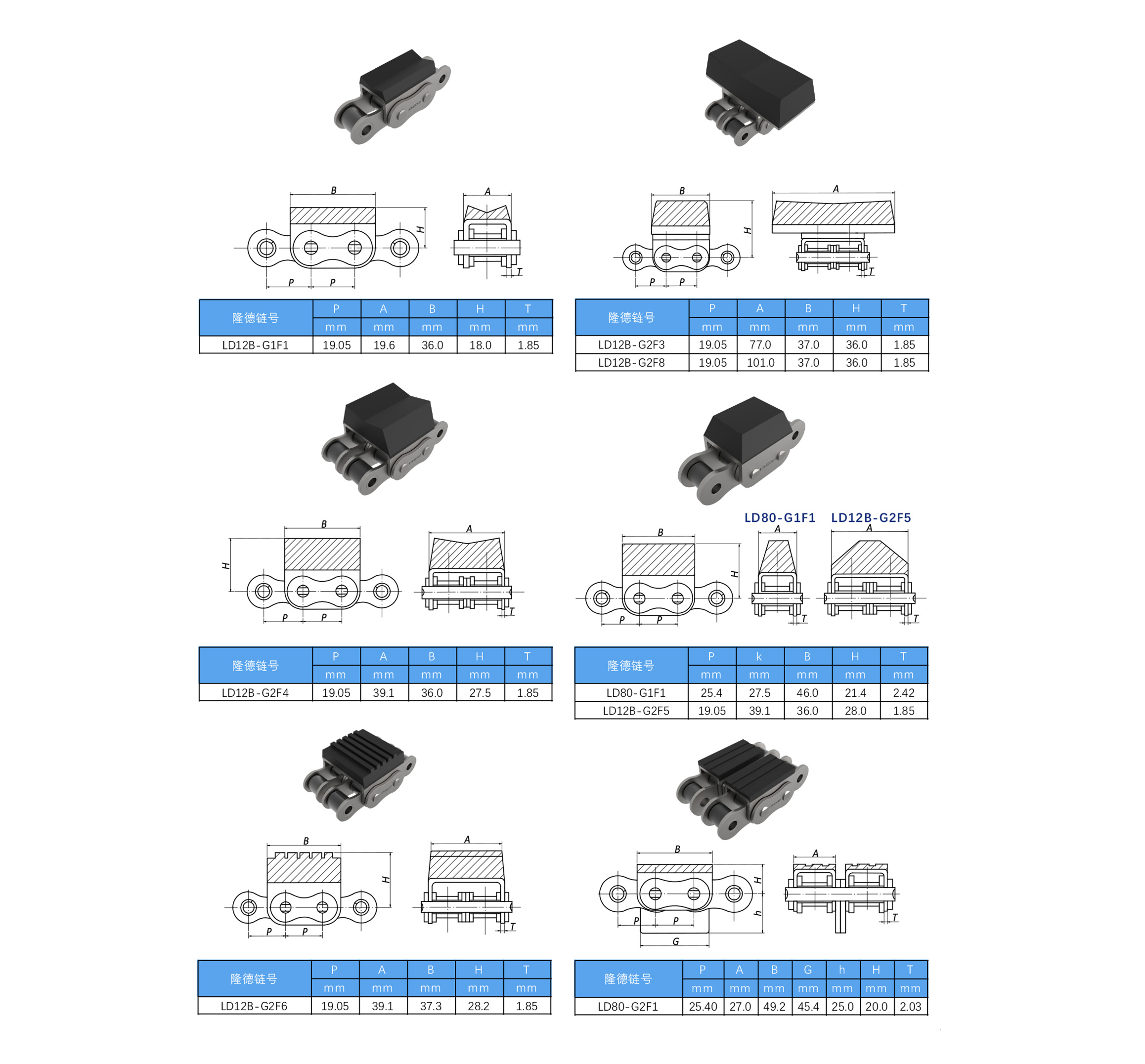(2)鏈條附件形式:G1=單排帶橡膠附件,G2=雙排帶橡膠附件