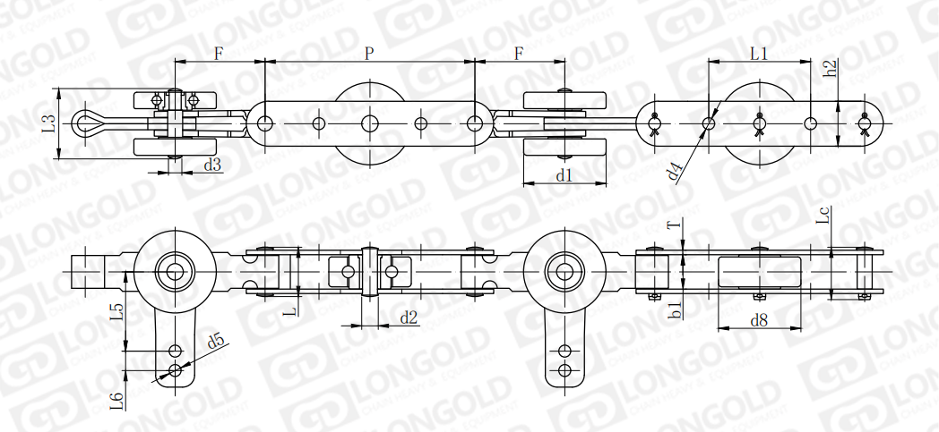 附件是為了將夾具安裝在鏈條上的零部件。可根據(jù)客戶要求設(shè)定安裝間隔。