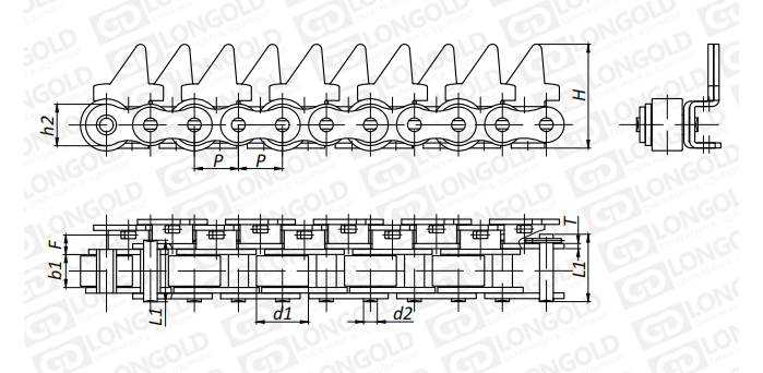 此類型鏈條是在標(biāo)準(zhǔn)短節(jié)距精密滾子鏈作為基鏈的基礎(chǔ)上加裝特殊附件的鏈條。