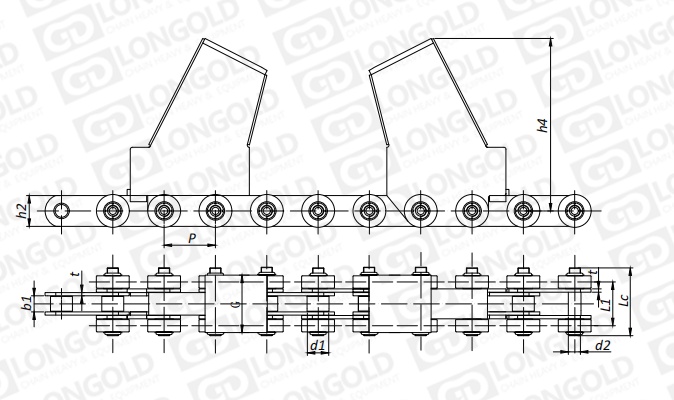 附件可配裝在每一個鏈節(jié)以上的鏈節(jié)間隔,如每偶數(shù)鏈節(jié)安裝,為了容易進行保養(yǎng),安裝在外鏈節(jié)。