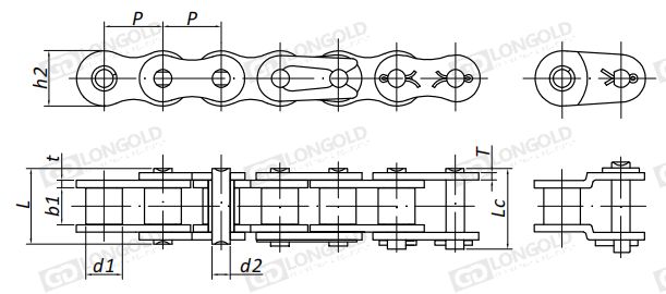 帶“*”表示鏈條為套筒鏈,表中滾子直徑d1為套筒直徑;帶 “#”表示鏈條為直板鏈。