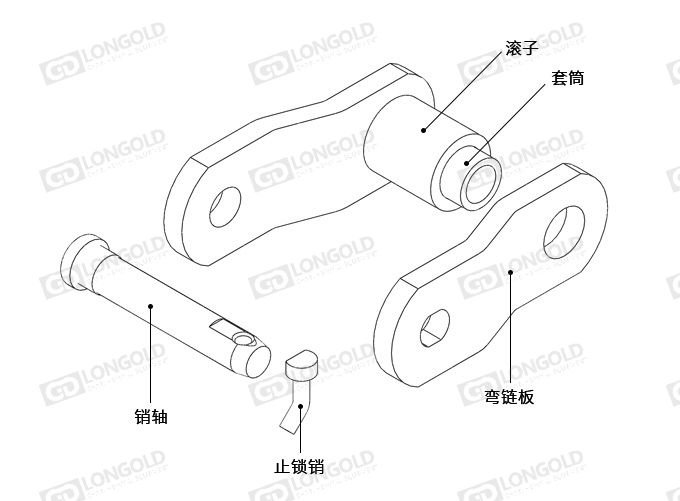 在結(jié)構(gòu)上只有一種彎板鏈節(jié),鏈板的折彎使鏈條能吸收較大的沖擊載荷。