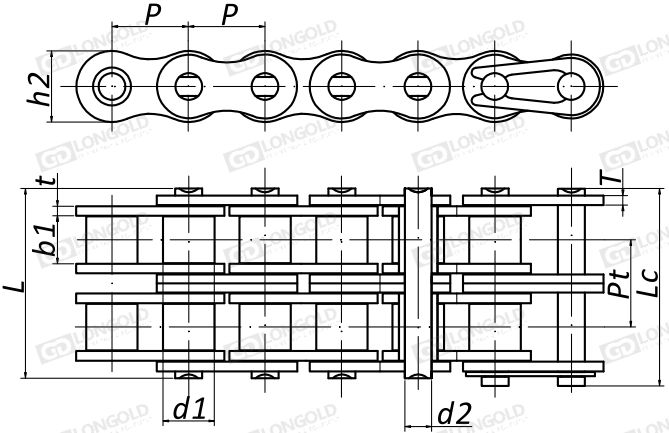 注:雙排免加油鏈條中無過渡鏈節(jié)。