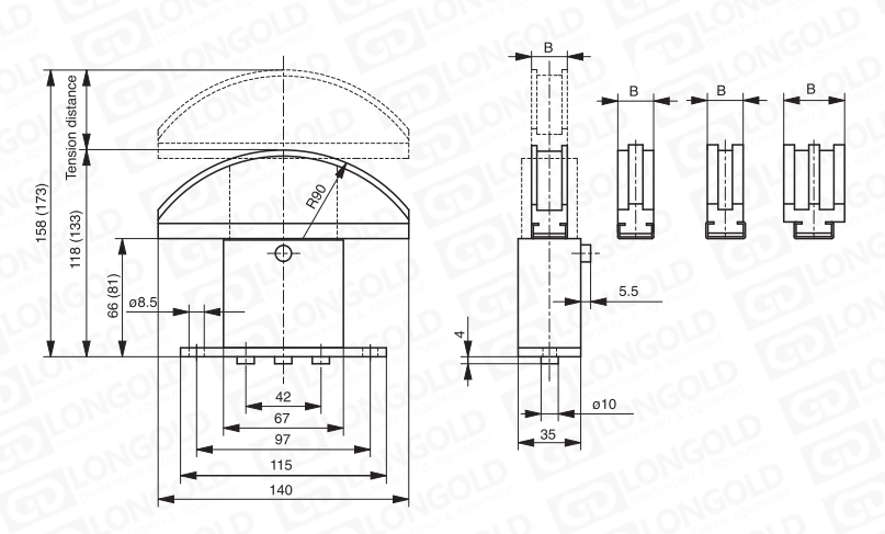 張緊力:3根彈簧,輕型,96-174N;重型,180-396N。