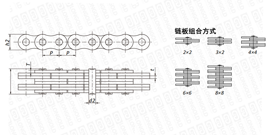 板式鏈條僅由鏈板和銷子構(gòu)成。鏈板被銷子連接起來,承受鏈板受到的張力。