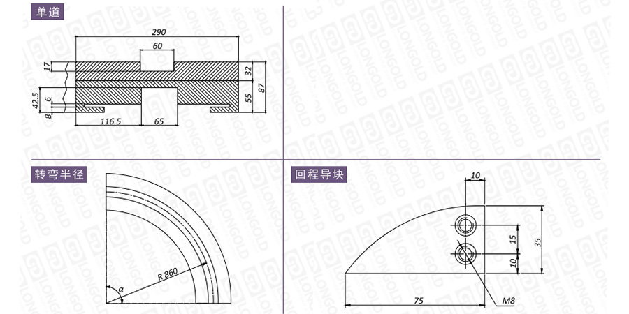 在選擇軌道時(shí),需要考慮安裝尺寸、材質(zhì)性質(zhì)、轉(zhuǎn)彎角度等因素,如有需要,請(qǐng)咨詢隆德技術(shù)人員。