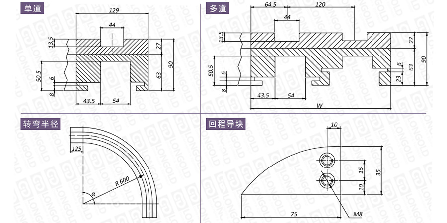 在選擇軌道時(shí),需要考慮安裝尺寸、材質(zhì)性質(zhì)、轉(zhuǎn)彎角度等因素,如有需要,請(qǐng)咨詢隆德技術(shù)人員。