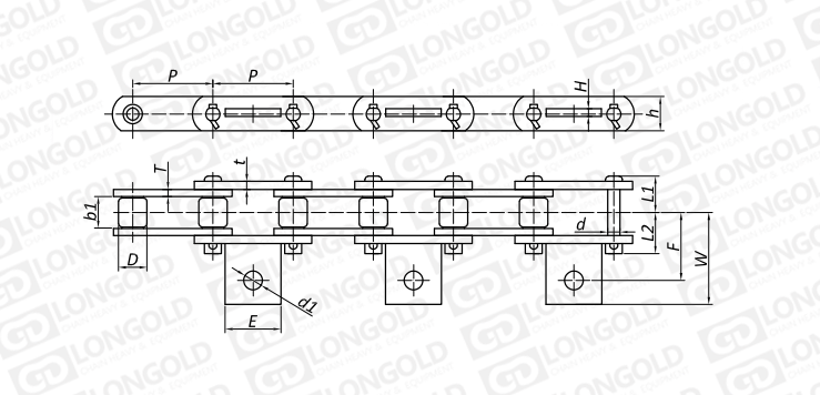 附件是為了將夾具安裝在鏈條上的零部件??筛鶕?jù)客戶要求設(shè)定安裝間隔。