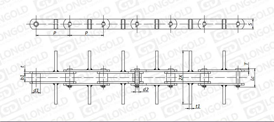 附件是為了將夾具安裝在鏈條上的零部件??筛鶕?jù)客戶要求設(shè)定安裝間隔。