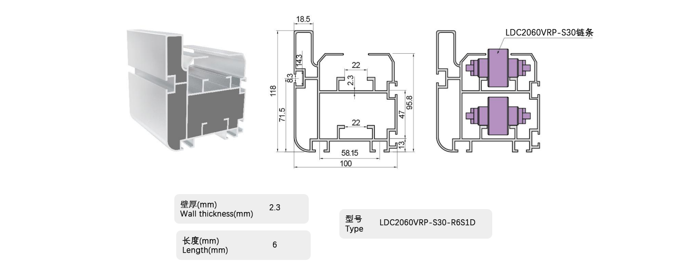 倍速鏈條用鋁制框架,用于滾子部采用工程塑料的倍速鏈條,包括帶蓋罩的倍速鏈條。在鋁制框架的輸送側(cè)小直徑滾子部安裝有鋼軌,可用于所有倍速鏈條。