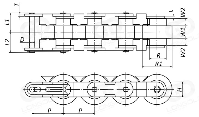 | 請(qǐng)把使用鏈條的長(zhǎng)度換算成鏈條的鏈節(jié)數(shù)后訂購(gòu)?;蛘?a target="_blank">咨詢隆德技術(shù)人員。 |