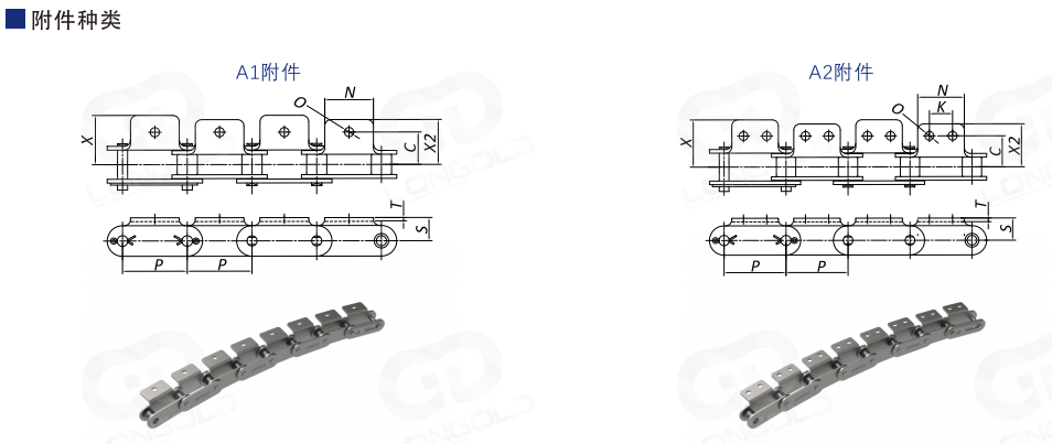 帶附件側(cè)彎A系列鏈條請(qǐng)使用鋼制ANSI標(biāo)準(zhǔn)鏈輪。
