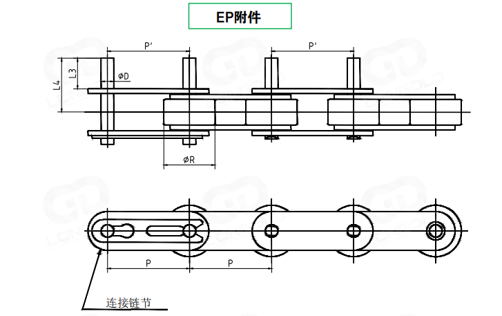 單側(cè)銷軸延長(zhǎng)作為附件,附件表示為:EP。