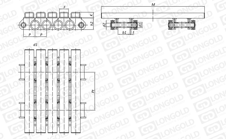 鏈條本體滾子類型有大滾子和帶F型邊滾子,鏈條的節(jié)距多為非標(biāo)節(jié)距。