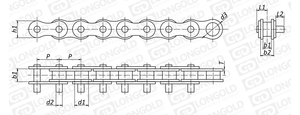 鏈條為帶延長銷鏈條,即鏈條的一側(cè)為帶延長銷形式。