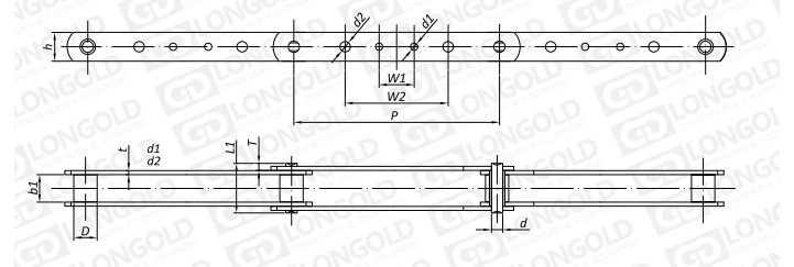 3939系列木材輸送鏈在鏈板上開設(shè)有多個孔,以方便安裝一些特殊部件來協(xié)助運(yùn)輸。
