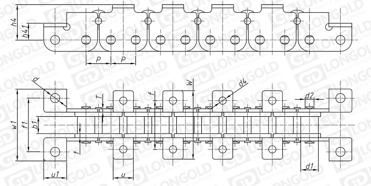附件是為了將夾具安裝在鏈條上的零部件。可根據(jù)客戶要求設定安裝間隔。