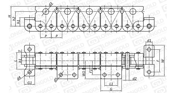 附件是為了將夾具安裝在鏈條上的零部件。可根據(jù)客戶要求設(shè)定安裝間隔。