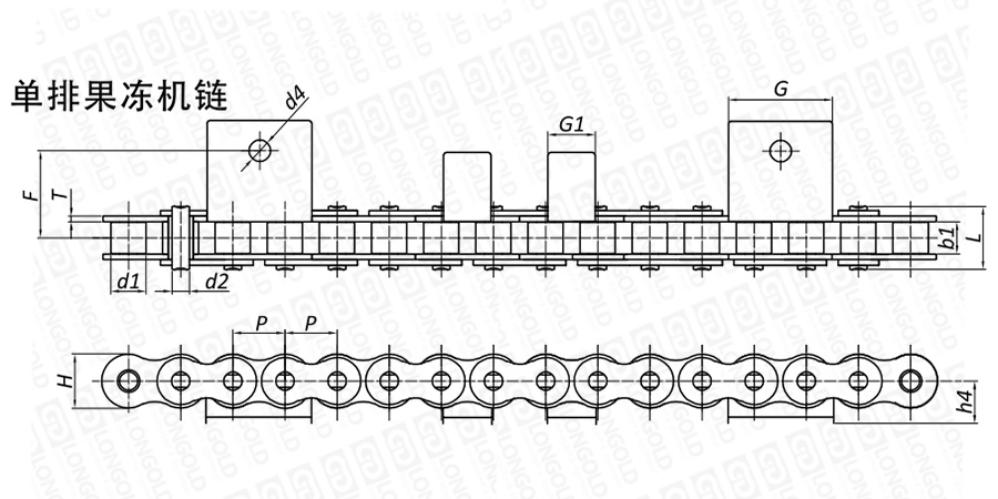 鏈條為單排,主要作為果凍生產(chǎn)裝置的驅(qū)動(dòng)鏈條來(lái)使用。
