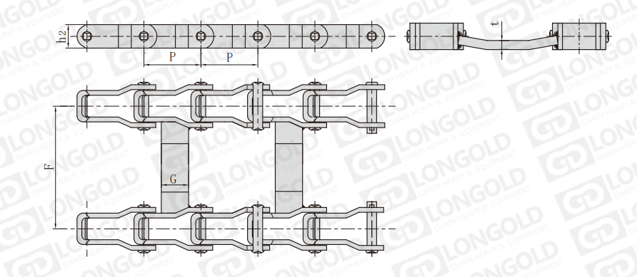 附件可配裝在每一個鏈節(jié)以上的鏈節(jié)間隔,如每偶數(shù)鏈節(jié)安裝,為了容易進行保養(yǎng),安裝在外鏈節(jié)。