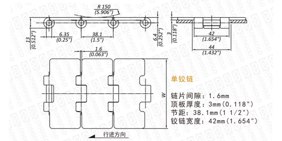 采用圓弧倒角,頂板上表面邊緣圓滑。傳送順暢、平滑,橫向和縱向間隙減小,更有利于產(chǎn)品運作。