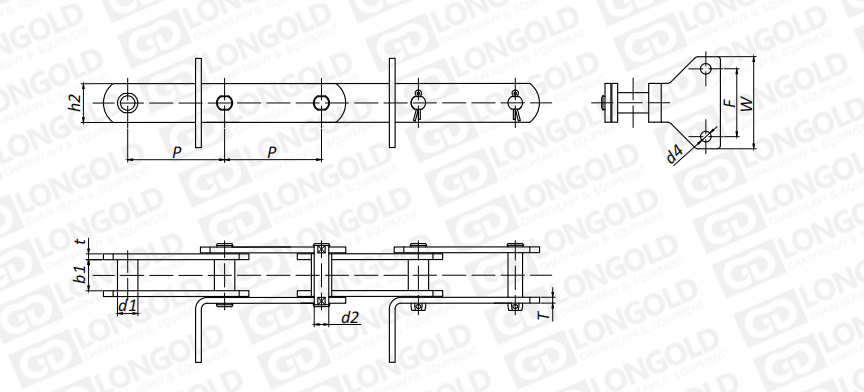 附件是為了將夾具安裝在鏈條上的零部件。可根據(jù)客戶(hù)要求設(shè)定安裝間隔。