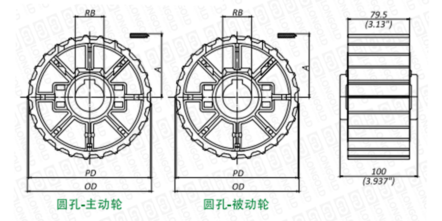 注:英制圓孔主動(dòng)輪提供固定螺栓,公制不提供。