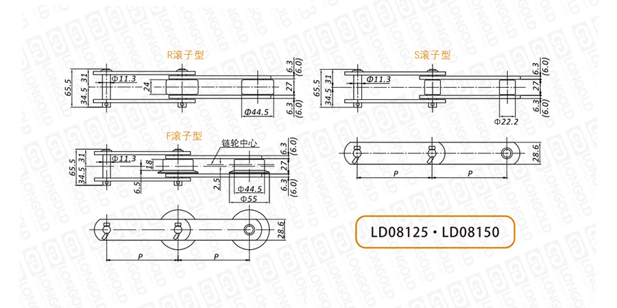 (2)滾子形式:R=大滾子,S=小滾子,F(xiàn)=F邊滾子