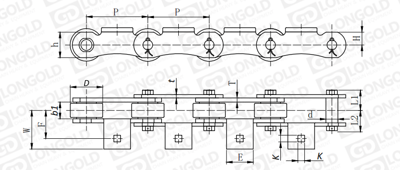 附件是為了將夾具安裝在鏈條上的零部件??筛鶕?jù)客戶要求設定安裝間隔。