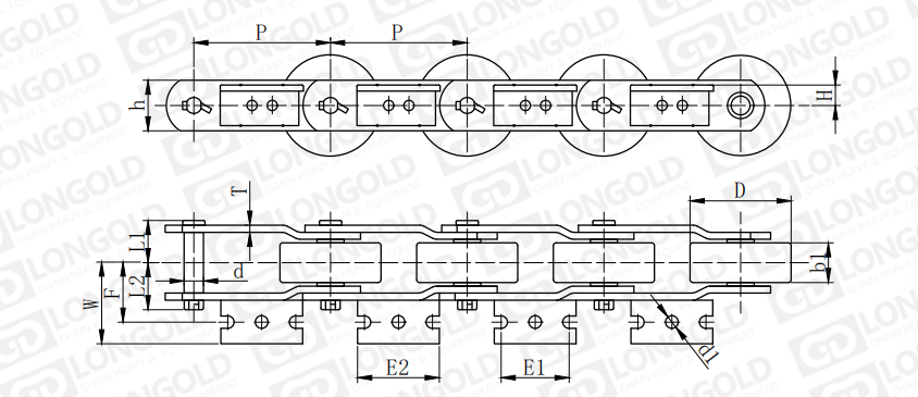 附件是為了將夾具安裝在鏈條上的零部件。可根據(jù)客戶要求設(shè)定安裝間隔。