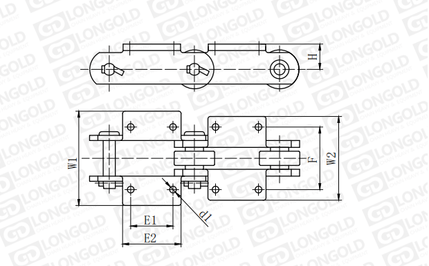 附件可配裝在每一個(gè)鏈節(jié)以上的鏈節(jié)間隔,如每偶數(shù)鏈節(jié)安裝,為了容易進(jìn)行保養(yǎng),安裝在外鏈節(jié)。
