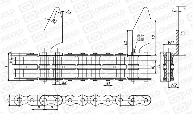 附件是為了將夾具安裝在鏈條上的零部件??筛鶕?jù)客戶(hù)要求設(shè)定安裝間隔。