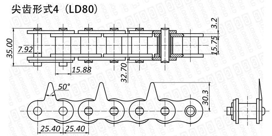 上圖為不銹鋼尖齒鏈IV的結(jié)構(gòu)圖。