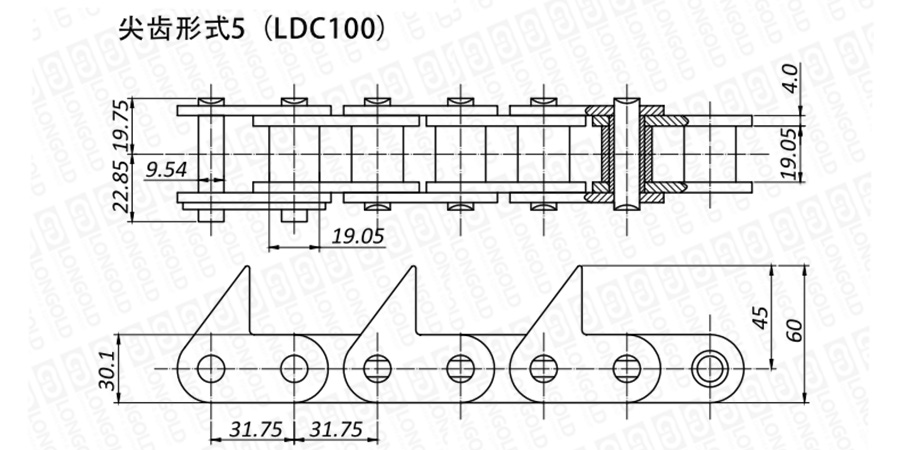 上圖為不銹鋼尖齒鏈V的結(jié)構(gòu)圖。