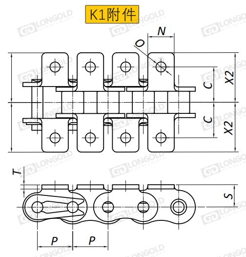 K1附件可配裝在每一個鏈節(jié)以上的鏈節(jié)間隔,如每偶數(shù)鏈節(jié)安裝,為了容易進行保養(yǎng),安裝在外鏈節(jié)。