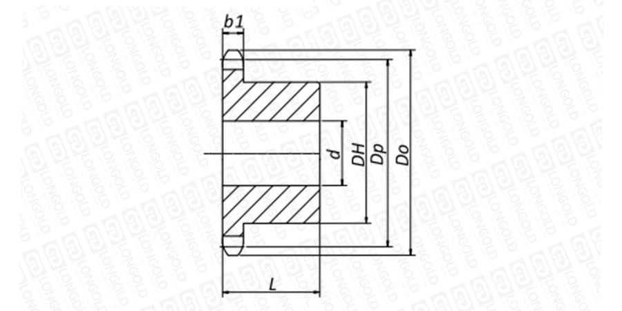 上圖為S滾子型雙節(jié)距工藝孔鏈輪的結(jié)構(gòu)圖。